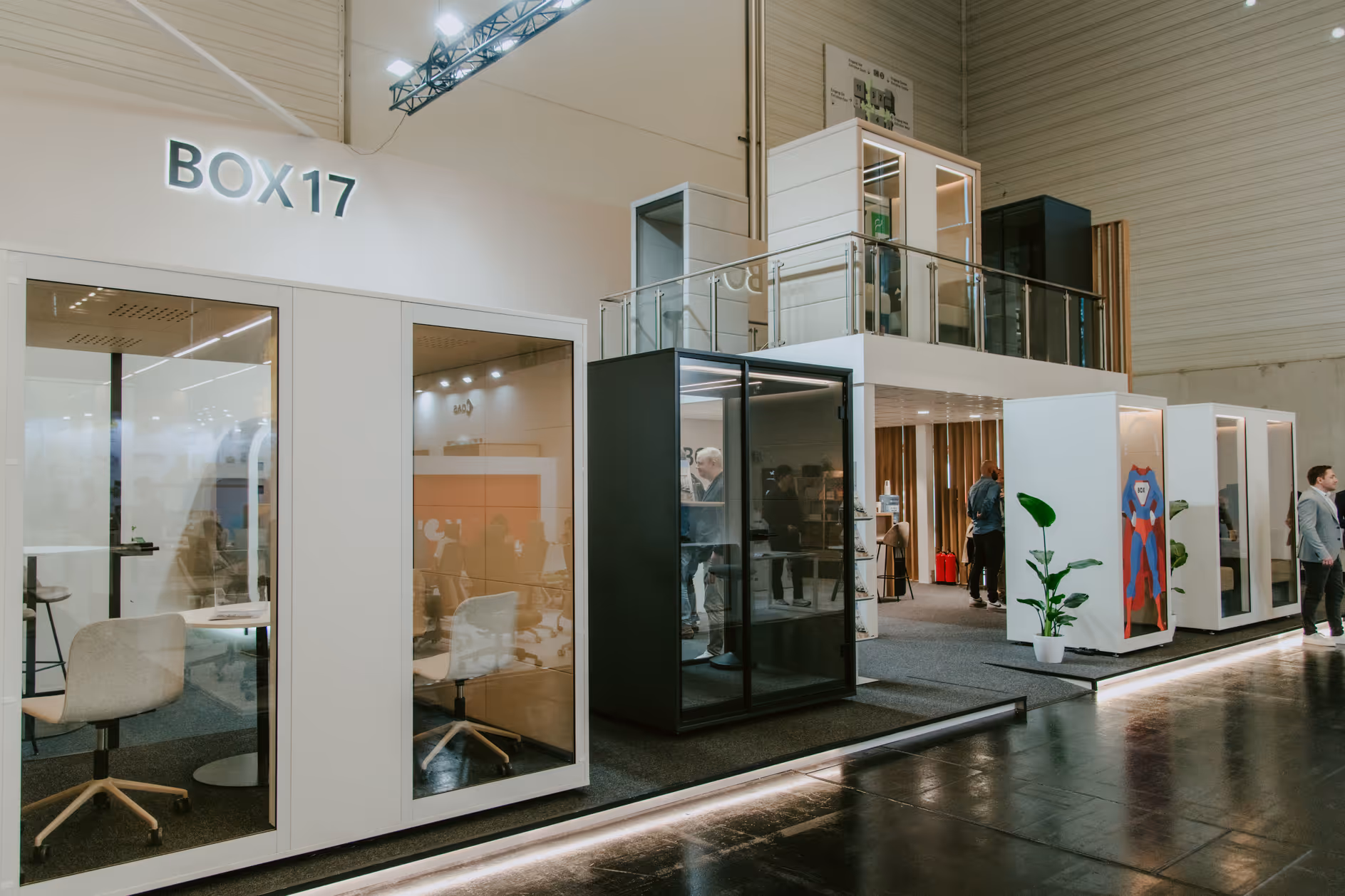 In October 2024, Box17 took center stage at Orgatec in Cologne, showcasing its latest innovations in flexible workspace design. Visitors experienced the smart, sound-insulated booths up close — a perfect blend of function, comfort, and aesthetics.